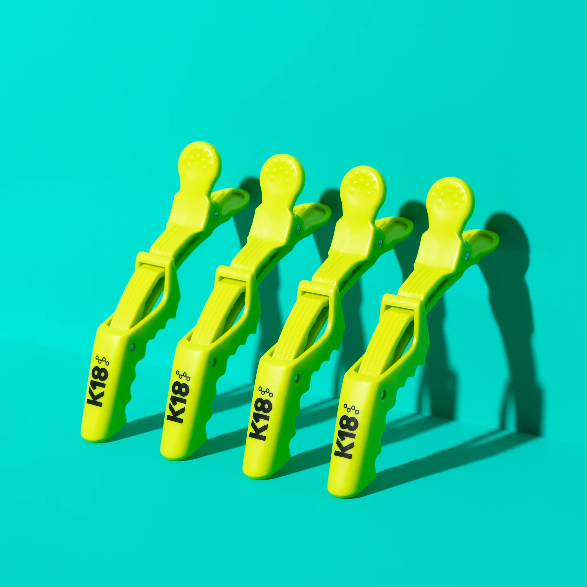 Limegröna alligator-clips med K18-logo